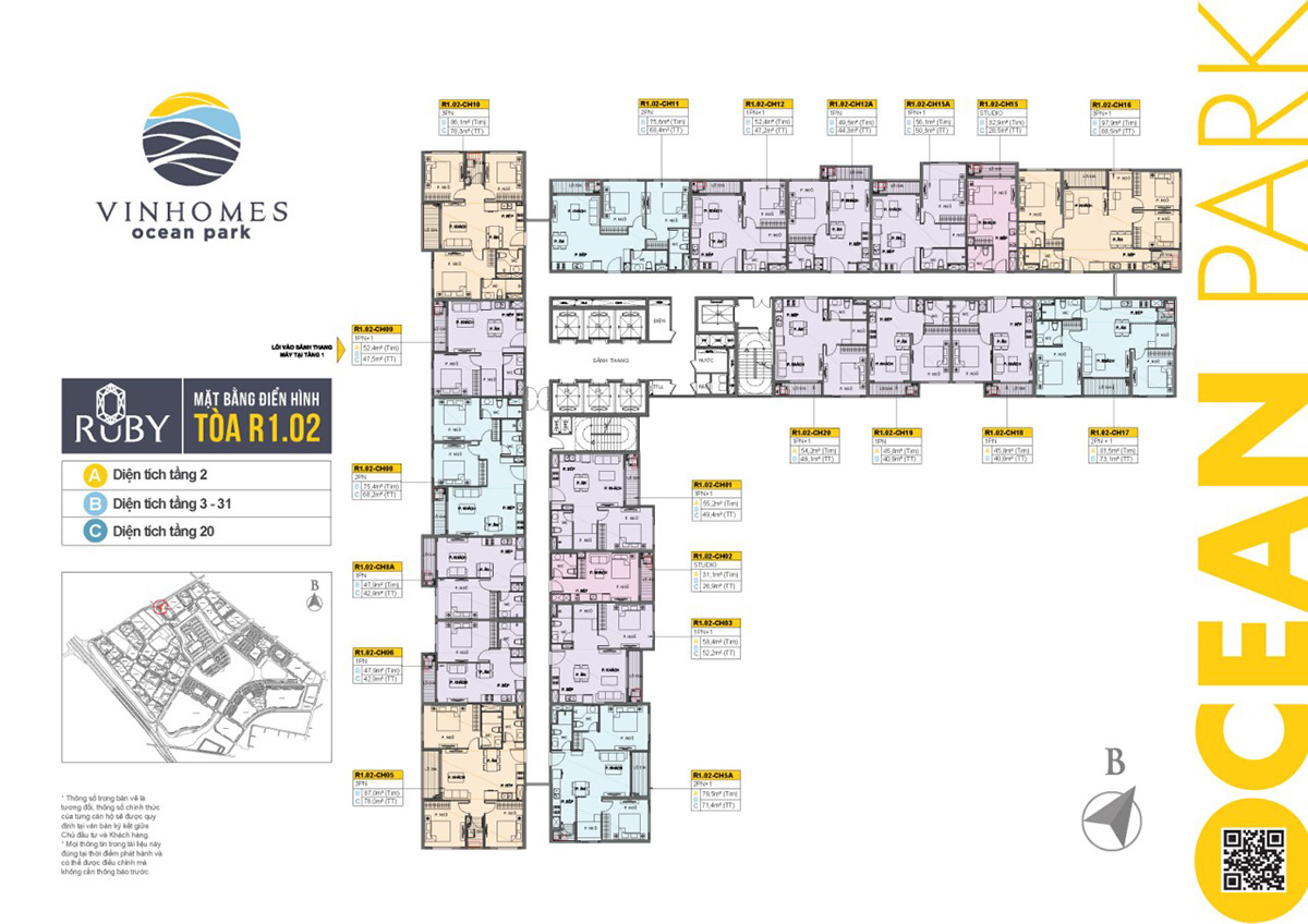 Ngày: 27/2/2020 - đăng bởi: trungntPhân khu cao tầng Vinhomes Ocean Park. Bao gồm 66 tòa chung cư trong đó sở hữu 1 tòa tháp văn phòng cao tới 45 tầng. Vinhomes Ocean Park bao gồm các phân khu nhỏ: Sapphire 1 2, Ruby, Diamond. Mật độ 1 tòa gồm 22 căn/sàn với 4 thang máy, 1 thang hàng, 2 thang thoát hiểm được thiết kế từ 1 -3 phòng ngủ. Dưới đây là mặt bằng tầng điển hình của khu SAPPHIRE và RUBY đang mở bán mà chúng tôi sẽ giới thiệu ở phần dưới đây: