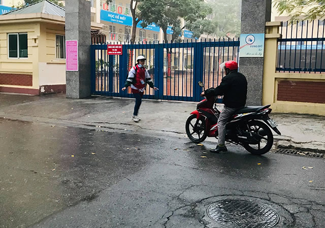 <p align="center"><i>Một học sinh THCS ở quận Nam Từ Liêm đến trường sáng 3/2 mới biết được nghỉ học.</i></p>