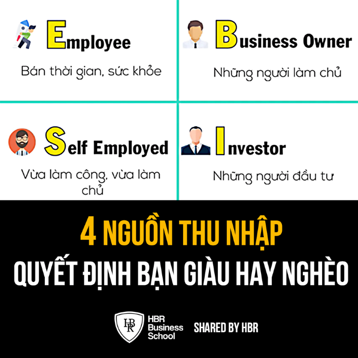 <div>Bài viết này sẽ nói về 4 nguồn thu nhập cốt lõi của một người lao động. Định nghĩa nguồn thu nhập này đã có từ rất lâu nhưng trong bộ sách Cha Giàu Cha Nghèo, Robert Kiyosaki đã tóm lược nó lại thành một sơ đồ. Ông ấy gọi nó là "Cashflow Quadrant" hiểu nôm na là "Kim tứ đồ". Bạn có thể xem qua biểu đồ trong ảnh minh họa để hiểu rõ hơn.</div>