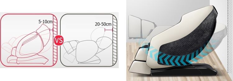 Thiết kế “không tường” của ghế giúp cho bạn tận dụng được tối đa không gian căn phòng. Phần lưng ghế chỉ cần cách tưởng khoảng 10cm thay vì khoảng cách lớn của nhiều dòng sản phẩm khác. Vì thế, nếu bạn đang sở hữu không gian sống với diện tích không quá lớn thì ghế massage DH02 chắc chắn là lựa chọn tuyệt vời!