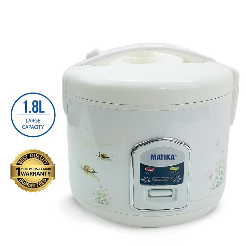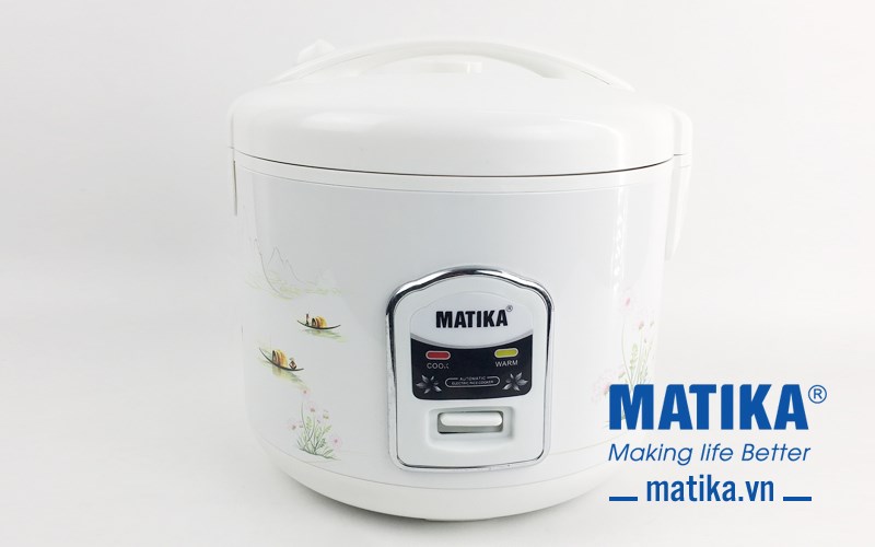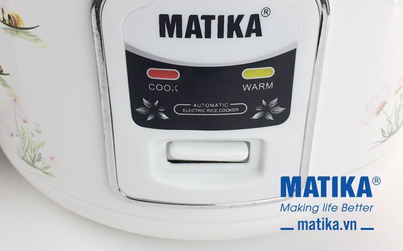 <div>Với thiết kế m&agrave;u trắng c&ugrave;ng hoa văn bắt mắt, nồi cơm điện Matika MTK-RC1812 c&ocirc;ng suất 700W sẽ gi&uacute;p chị em chế t&aacute;c những bữa cơm thơm ngon cho cả gia đ&igrave;nh.</div>