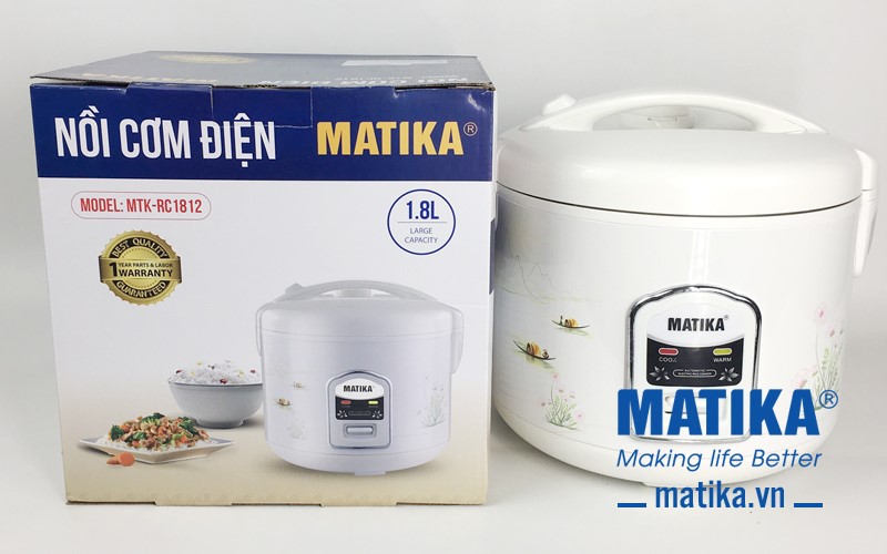 <div style="text-align: center;">Thiết kế đẹp, dễ sử dụng, nồi cơm điện Matika MTK-RC1812 chắc chắn l&agrave; sản phẩm thiết thực trong mỗi căn bếp của gia đ&igrave;nh</div>
