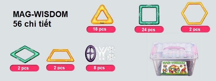 <div>Các bộ Mag Wisdom chúng tôi bán ra: 56; 88; 108; bộ lớn nhất 258 chi tiết và bộ bánh xe 4 chi tiết.</div>